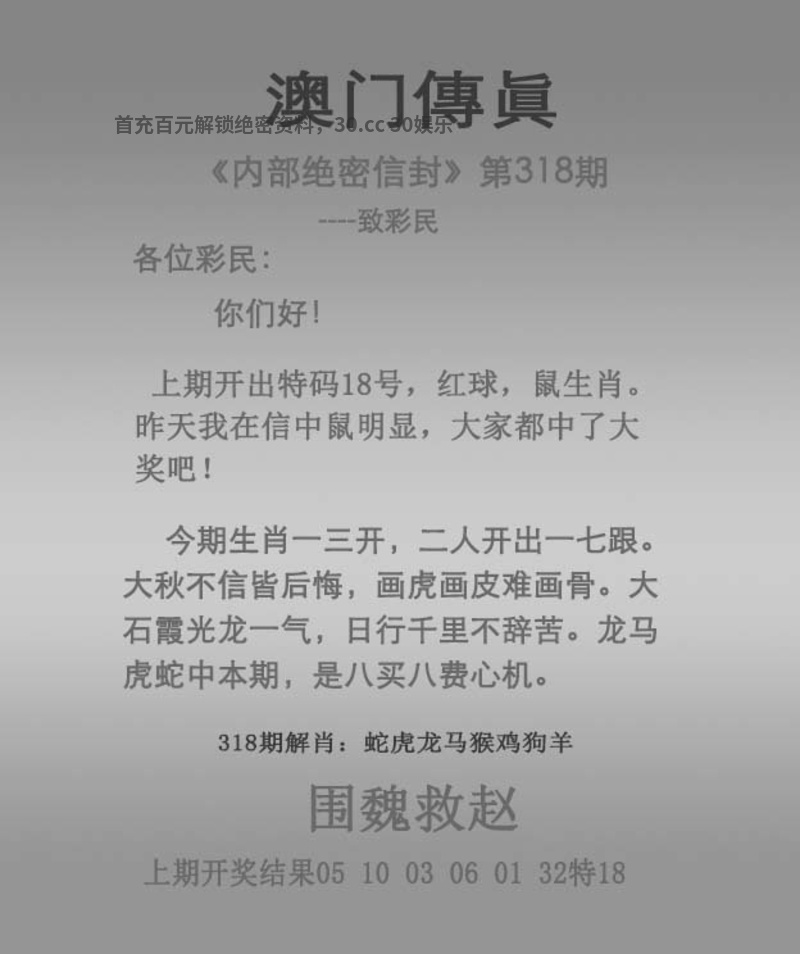 318期:玄彩谜语:资料准备更新中 主攻特码:资料准备更新中 |